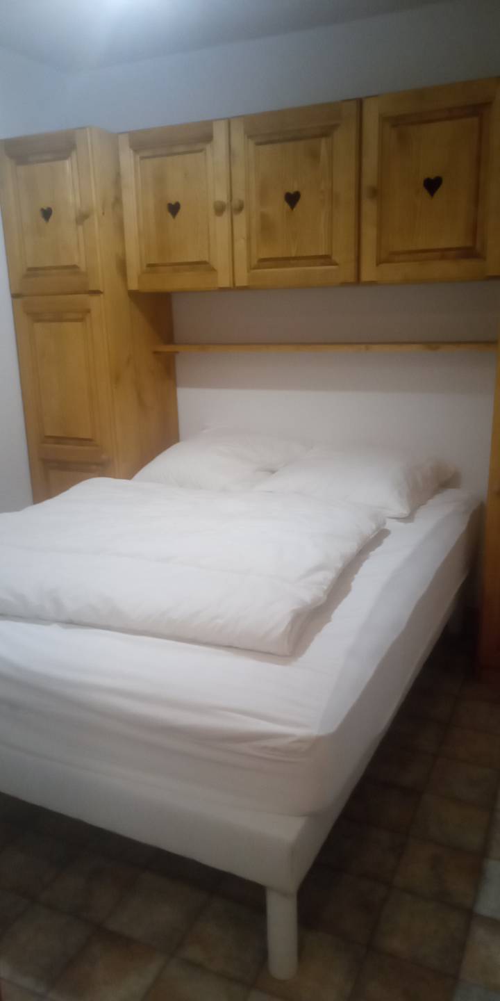 - une chambre avec un grand lit double (pour 2 personnes) et un commode.