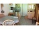 - un coin repas avec une table à rallonges, 4 chaises, 2 tabourets, vaisselier