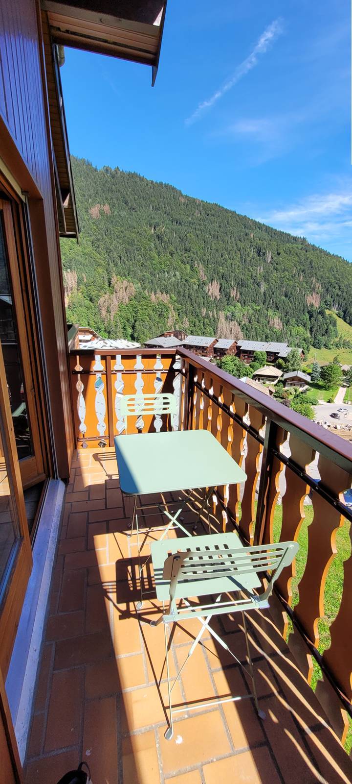 Cet espace donne sur un balcon avec une belle vue sur la vallée