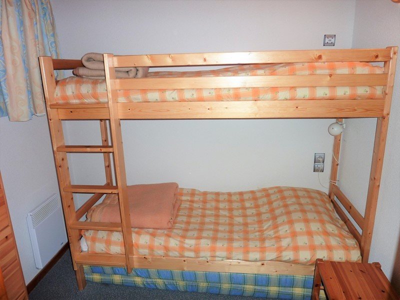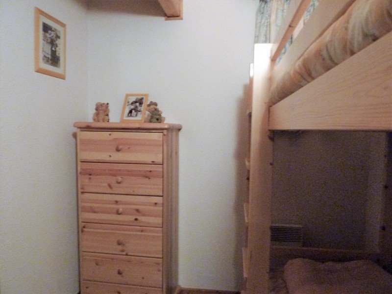 - une chambre avec lits superposés (pour 2 personnes), armoire et chevet. Matelas d'appoint en supplément (prévoir une alèse). Attention, le couchage en hauteur est déconseillé pour les enfants de moins de 6 ans.