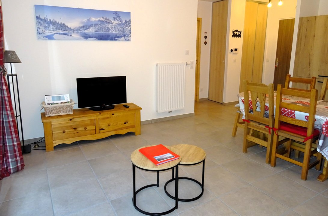 - un séjour avec coin repas, canapé clic-clac (pour 2 personnes), meubles de Télévision-télévision