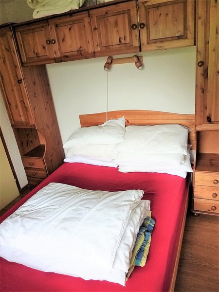 - une chambre avec un lit double (pour 2 personnes) et un meuble de rangement pont avec 2 colonnes