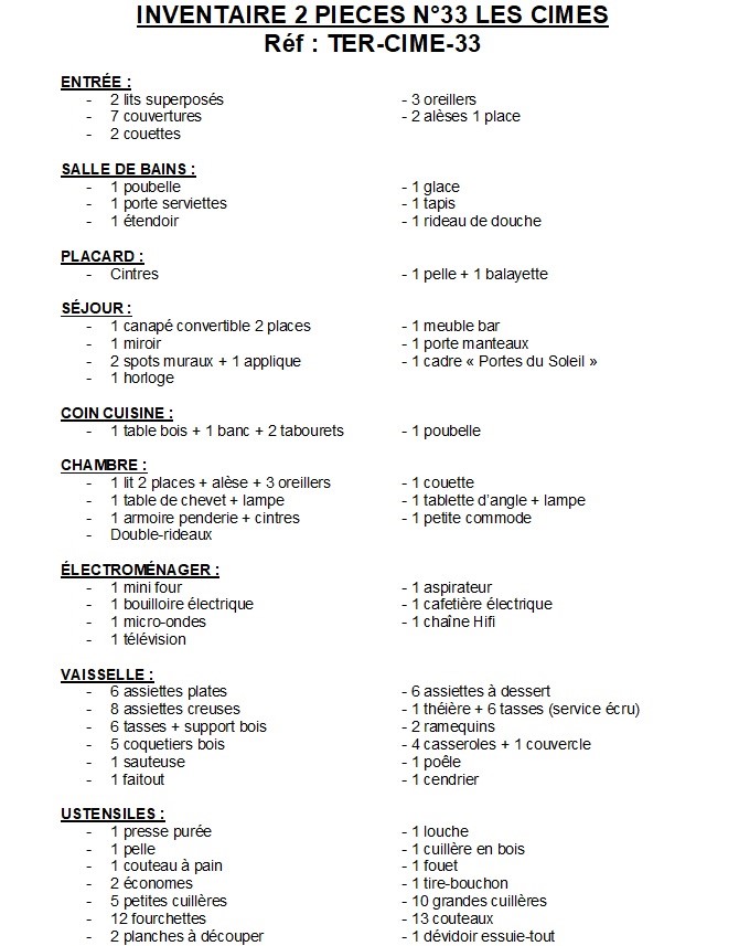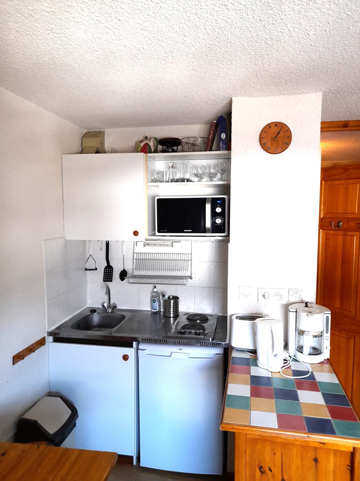 - une kitchenette équipée avec placards, 2 plaques électriques, mini four, réfrigérateur et micro-ondes.