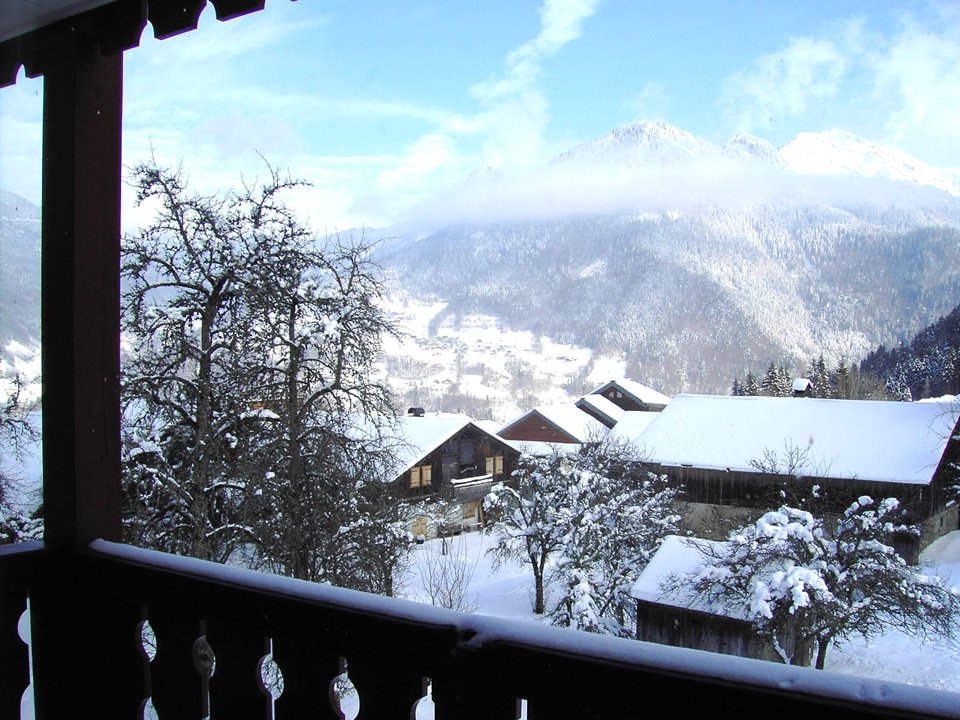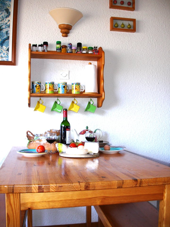 - un coin repas avec une table, 2 bancs et 2 tabourets. Cet espace donne sur un balcon exposé Est offrant une très belle vue sur les montagnes