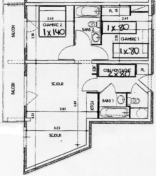 - une chambre avec lits jumeaux (pour 2 personnes), commode et placard