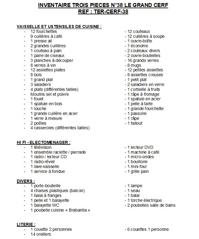 L'option de ménage en fin de séjour est obligatoire et à la charge du locataire.