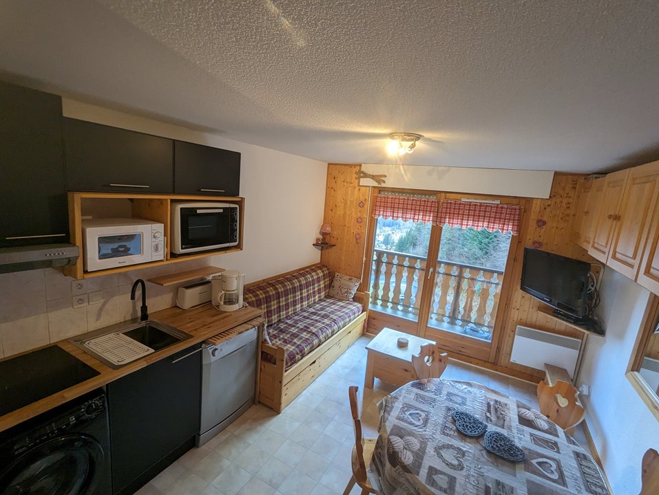 - un séjour avec un canapé lit gigogne (pour 2 personnes) et meubles de rangement, TV et décodeur satellite HD