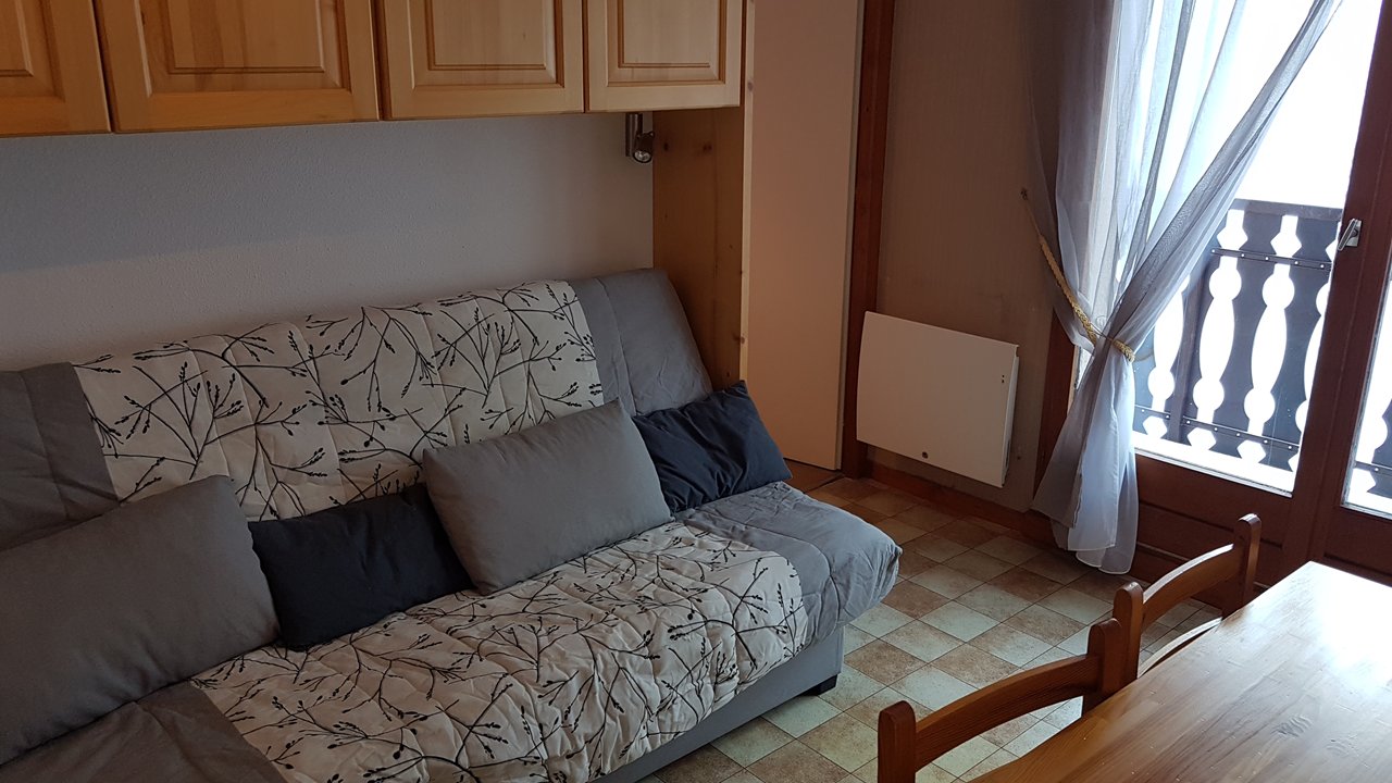 - un coin séjour avec un canapé convertible (pour 2 personnes), TV, armoire de rangement.