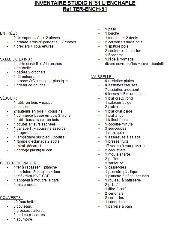 - un séjour avec 1 canapé convertible (pour 2 personnes), deux fauteuils, table de salon, commode, TV, décodeur satellite HD