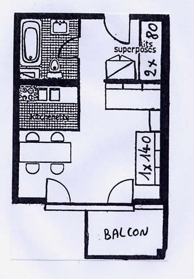 - une entrée avec lits superposés (pour 2 personnes) et placard. Attention, le couchage en hauteur est déconseillé aux enfants de moins de 6 ans