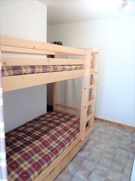 - une entrée avec dégagement, rangement et lits superposés (pour 2 personnes). Attention, le couchage en hauteur est déconseillé aux enfants de moins de 6 ans