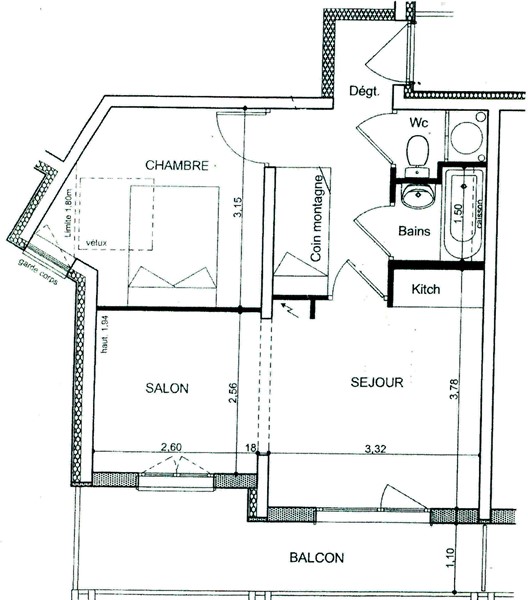 Appartement 3 pièces de 46 m² '(loi Carrez), situé au 4e étage d'une résidence avec ascenseur. Il offre :