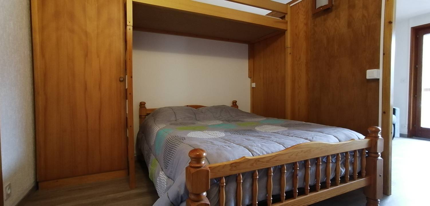 - une entrée avec coin montagne composé d'un lit double (pour 2 personnes), un lit superposé (pour 1 personne) et placard. Attention, accès étroit et en hauteur au lit superposé, déconseillé à un enfant de moins de 6 ans.