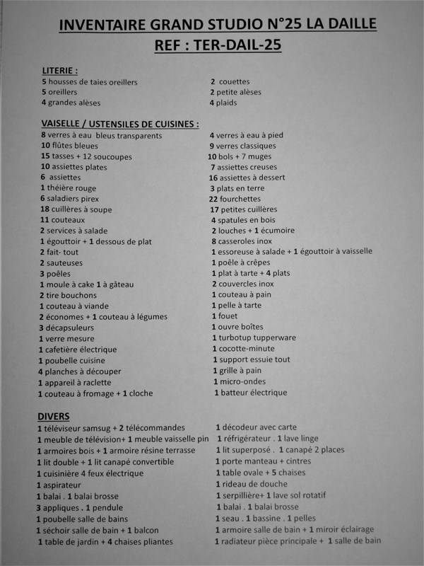 Il ne comprend pas le linge de maison, ni le linge de lit.