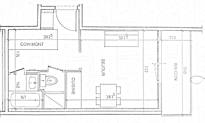 - un coin repas composé de 1 table, 4 chaises. Cet espace donne sur un balcon offrant une vue sur la vallée.