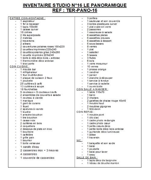 Le ménage en fin de séjour est à la charge du locataire.
