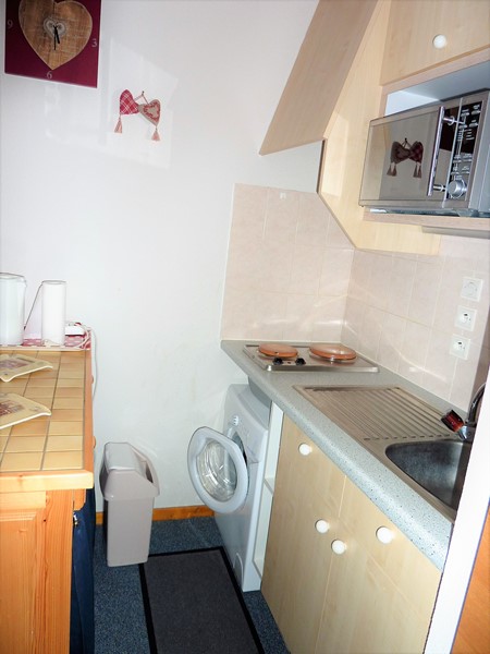 - une kitchenette équipée avec four, micro-ondes, deux plaques de cuisson, grand réfrigérateur, machine à laver