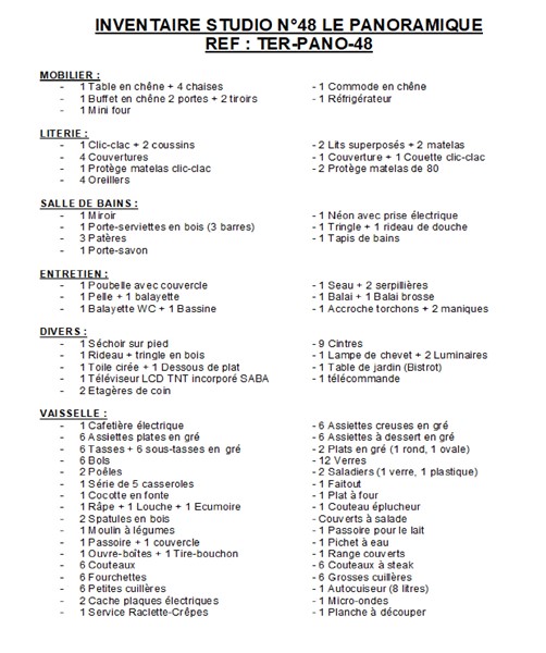 Le ménage en fin de séjour est à la charge du locataire.