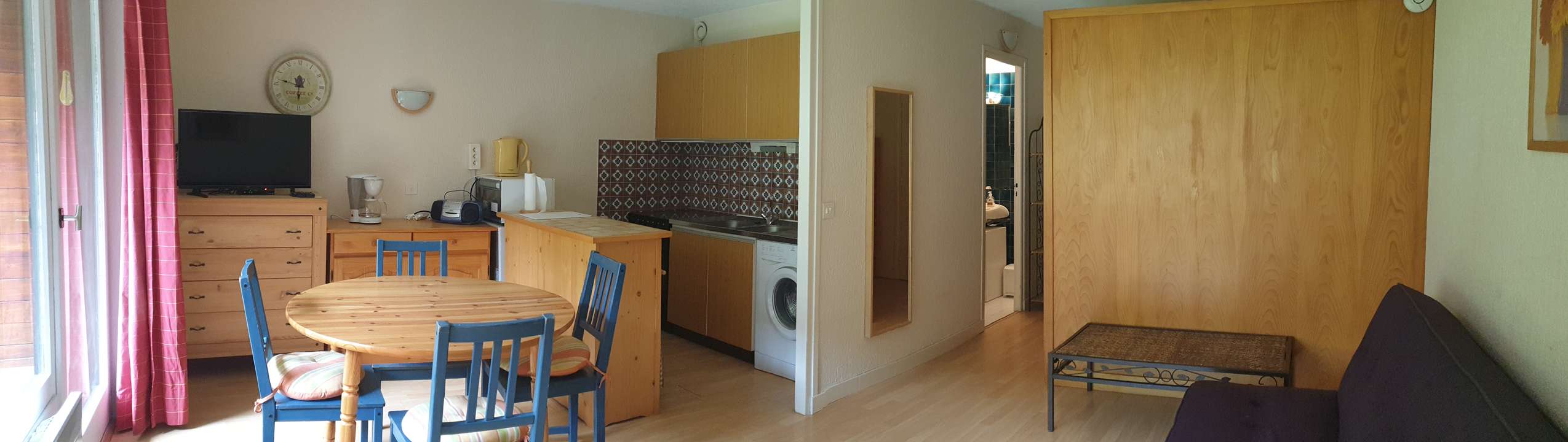 - un séjour avec un canapé convertible 120x190 (pour 2 personnes), un fauteuil, une table basse, commode, TV, décodeur satellite HD lecteur DVD.