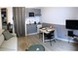 - un coin repas avec une table, 5 chaises et rangement. Cet espace donne sur un balcon de 4m² avec une belle vue dégagée sur la vallée. Fermeture par volet roulant électrique.