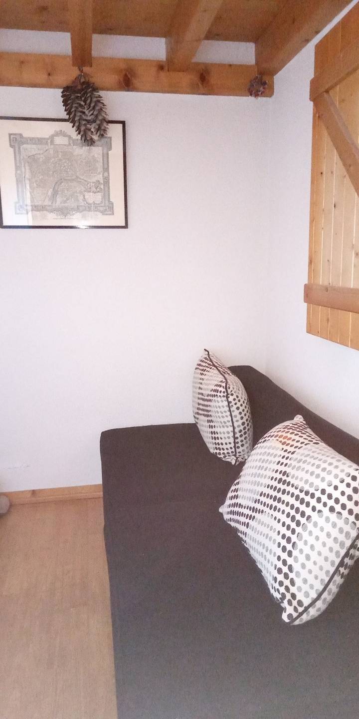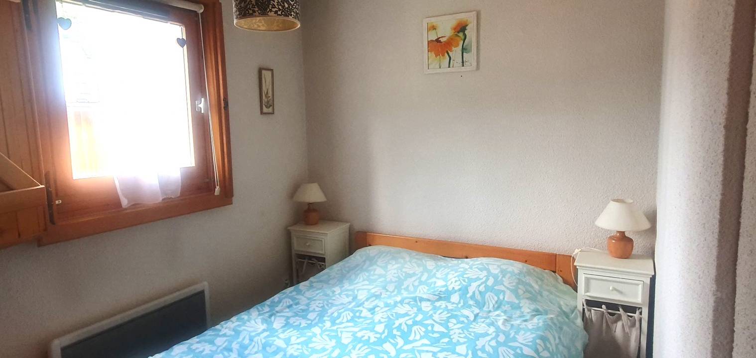 D’un hall d’entrée desservant une 1ère chambre avec 1 lit double - 2 chevets et lampes - rangement, à suivre la 2éme chambre avec également 1 un canape convertible (2 pers) + rangement, escalier menant à l'étage à suivre une salle de bain (baignoire et lavabo) - WC indépendant, en continuité, la pièce de vie est équipée d’une cuisine aménagée, top frigo-hotte-1 plaque vitro 2 feux – rangements petit lave-linge coin repas - table + 4 chaises . Dans le même espace un canapé - télévision, le tout donnant accès sur le balcon -vue dégagée sur le village.