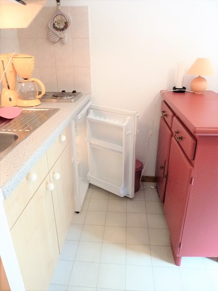 - a kitchenette equipped with 2 electric plates, refrigerator table-top, mini oven, microwave and cupboards