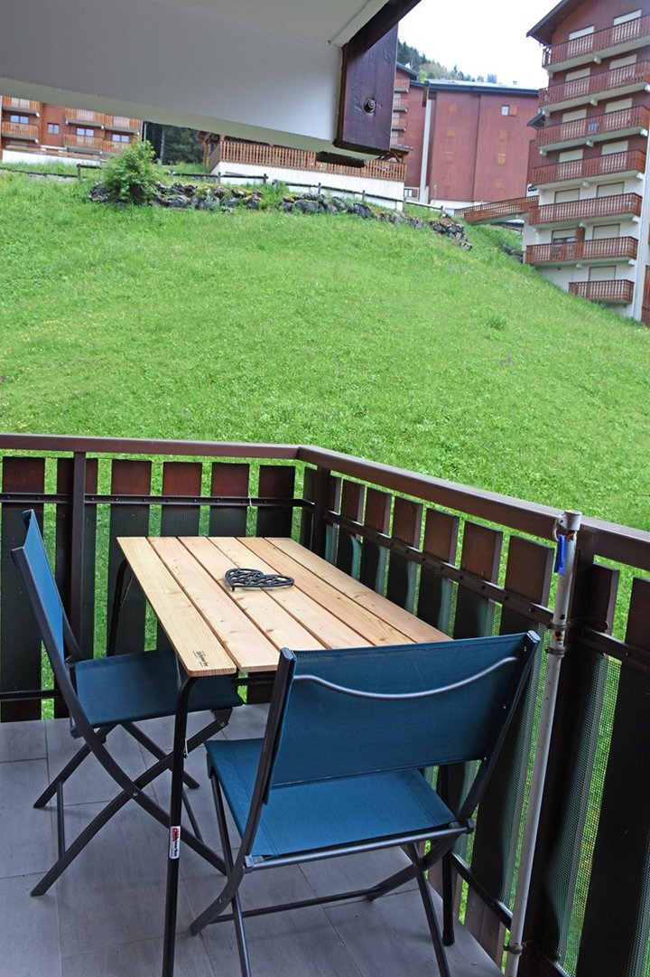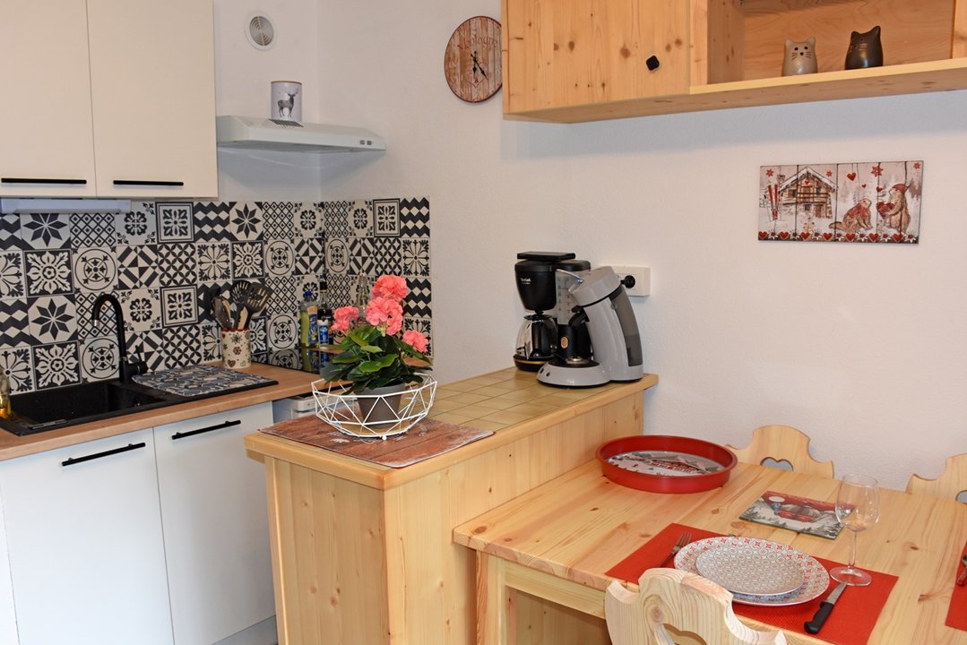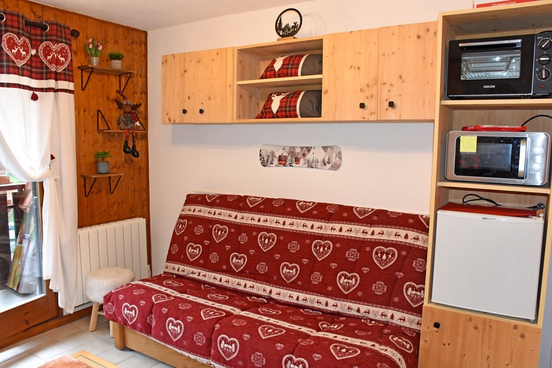 - a living room/living room with a sofa bed (for 2 people), large TV, dining table for 5 people with 4 chairs and 2 stools, overlooking a balcony of 4 m².