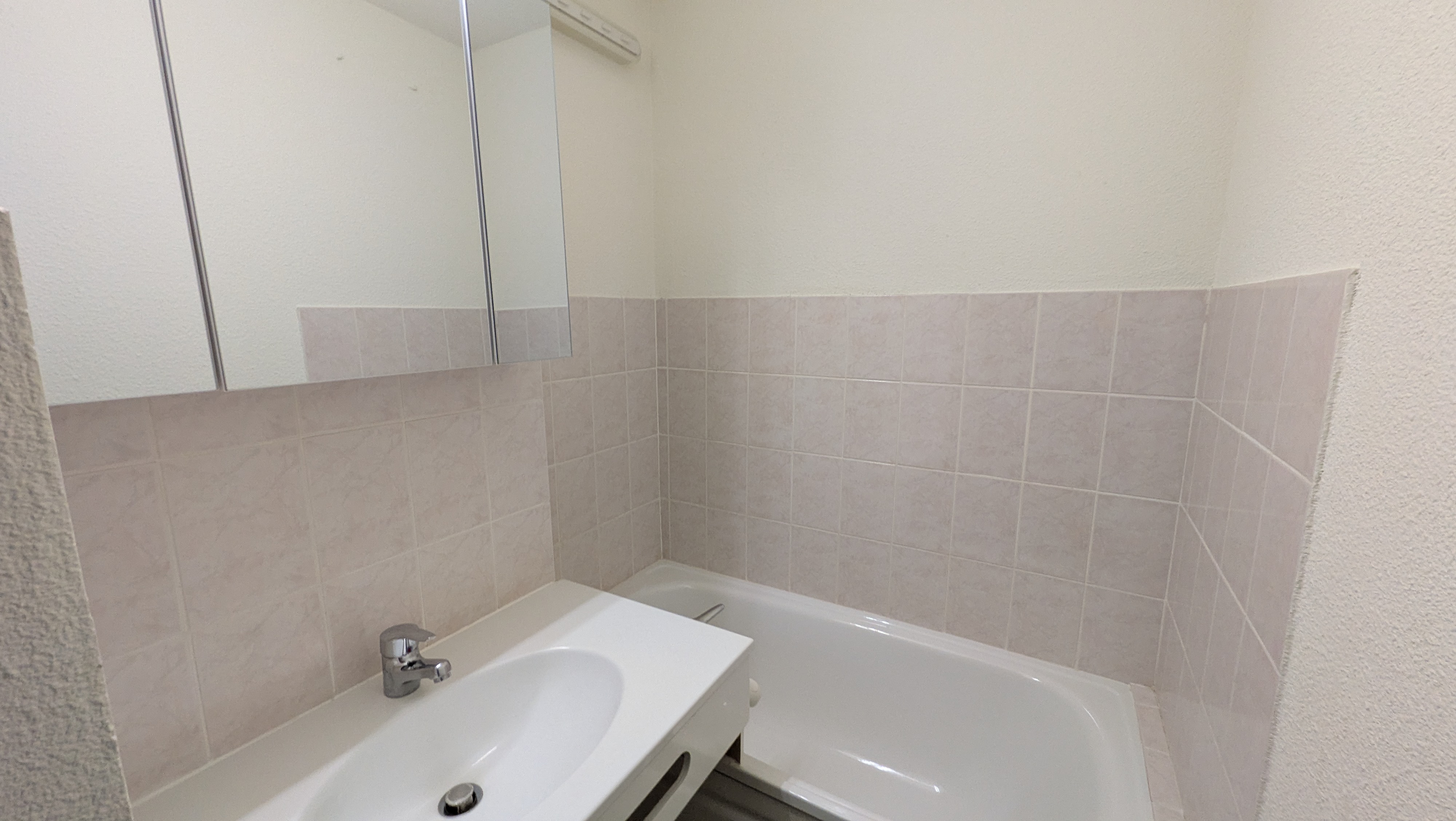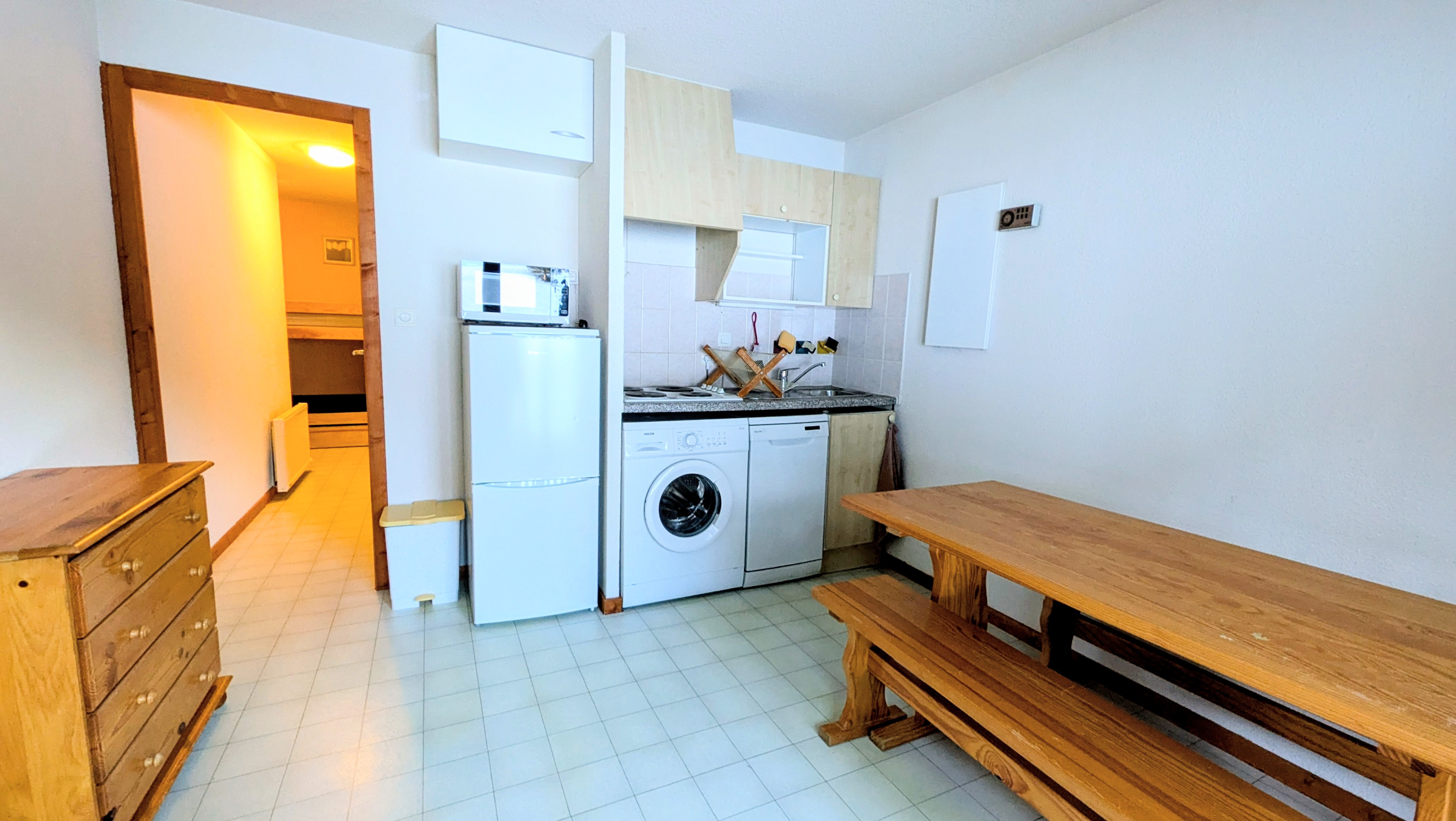 Agréable et lumineux T2- 27m² -composé d'un hall d'entée qui dessert la salle de bain et wc indépendant-coin montagne-A suivre la pièce de vie lumineuse avec sa grande baie vitrée donnant sur le balcon avec une vue dégagée sur la montagne. On accède à la chambre par le hall d'entrée.